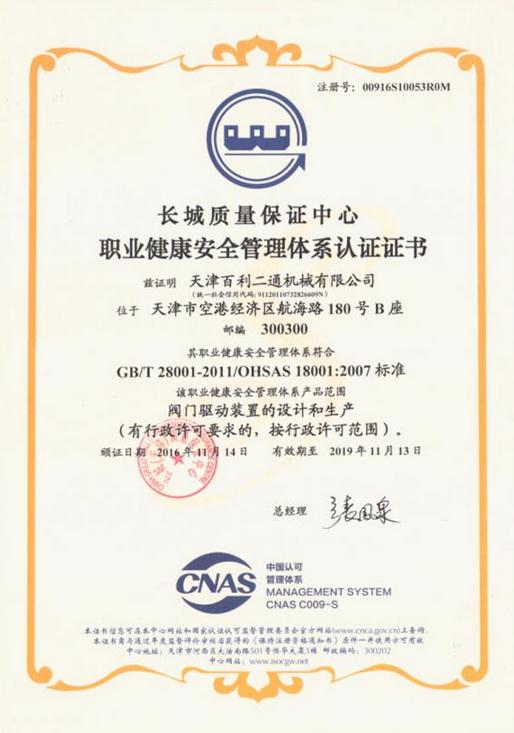 公司于2016年10月取得了ISO14001環(huán)境管理體系認(rèn)證和OHSAS18001職業(yè)健康安全管理體系認(rèn)證,完善了三個體系認(rèn)證。企業(yè)進(jìn)行三個體系的認(rèn)證世界性的趨勢,是企業(yè)參與國際貿(mào)易、提高自身競爭的自覺要求,也是企業(yè)遵法守信、誠實(shí)負(fù)責(zé)的體現(xiàn)形式。