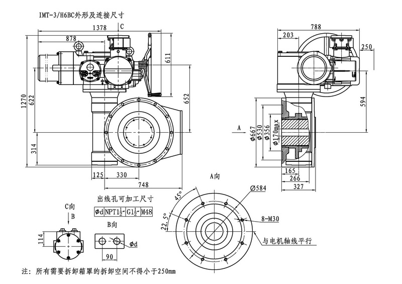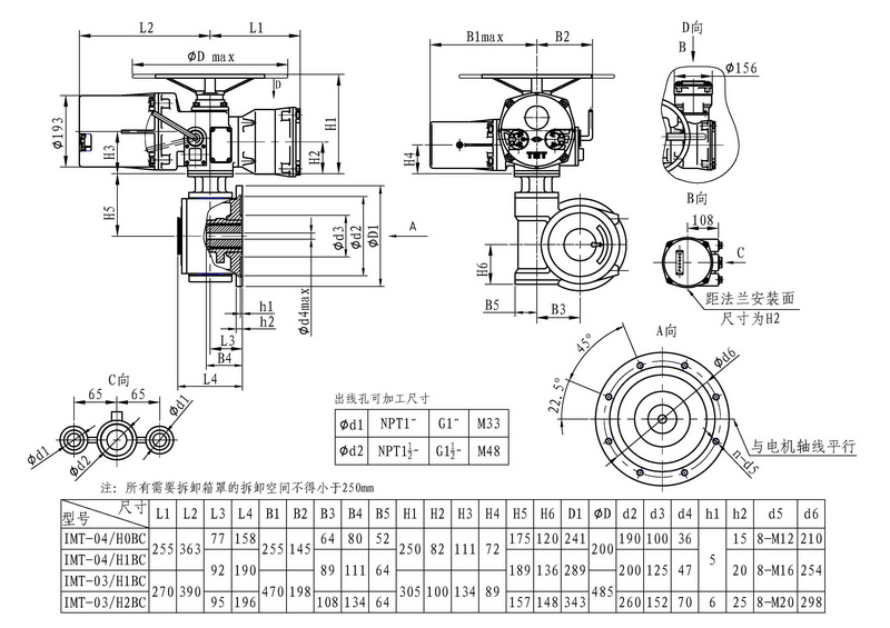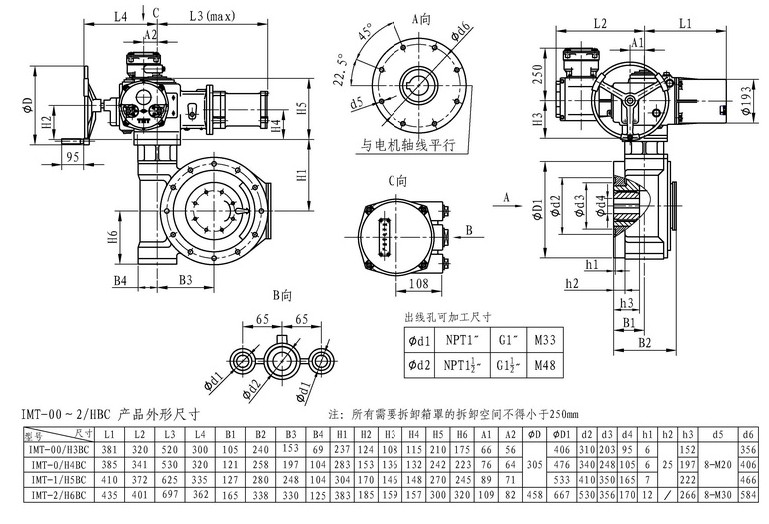 IMT/HBC系列智能型電動裝置是IMT系列多回轉(zhuǎn)智能型電動裝置與HBC蝸輪減速器的組合型式,它適合球閥、蝶閥等部分回轉(zhuǎn)閥門的驅(qū)動控制。 IMT/HBC智能型電動裝置具有以下特點(diǎn):結(jié)構(gòu)設(shè)計(jì)堅(jiān)固可靠,產(chǎn)品規(guī)格齊全,驅(qū)動轉(zhuǎn)矩范圍大且動力輸出穩(wěn)定, 具有良好的自鎖性能。 HBC輸出軸結(jié)構(gòu)獨(dú)特,裝有與閥桿連接的漸開線花鍵接頭,產(chǎn)品的安裝調(diào)試方便。