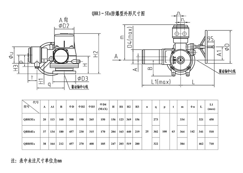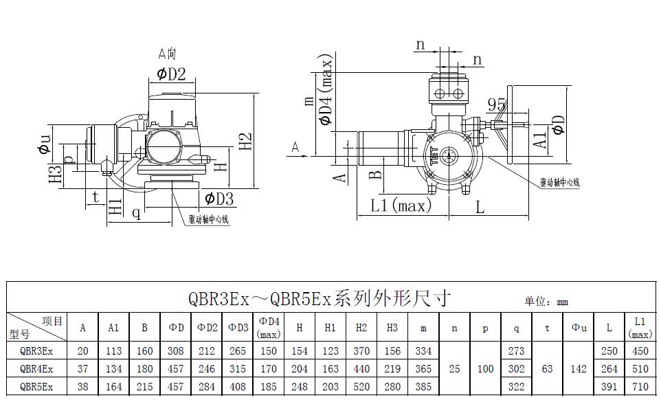 QBR3QBR5是我公司研制的部分回轉(zhuǎn)閥門電動裝置,控制轉(zhuǎn)矩范圍:900N.m12000N.m。該電動裝置可與球閥﹑蝶閥等閥瓣做90°回轉(zhuǎn)的閥門組合成電動閥門,其功能是控制閥門的啟閉。該電動裝置能夠進(jìn)行單機(jī)或多機(jī)室內(nèi)控制遠(yuǎn)距離控制電動操作和現(xiàn)場手動或電動操作,可廣泛地應(yīng)用在具有管道閥門的工業(yè)系統(tǒng)。該產(chǎn)品的防護(hù)等級為IP67,隔爆型產(chǎn)品(型號中有Ex)的隔爆等級 為dBT4