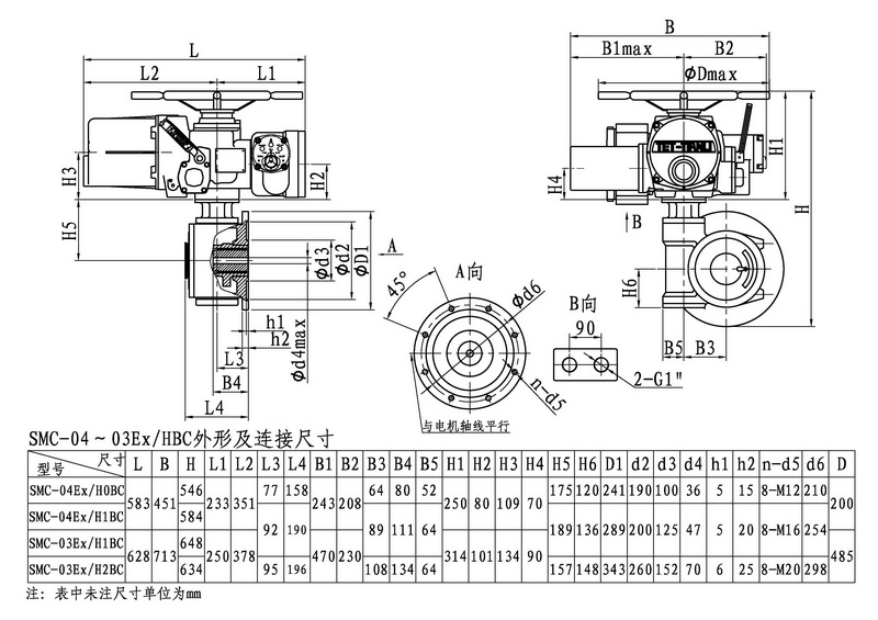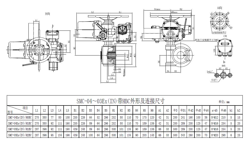 SMC/HBC系列電動裝置是SMC系列多回轉(zhuǎn)電動裝置與HBC蝸輪減速器的組合型式,它適合球閥、蝶閥等部分回轉(zhuǎn)閥門的驅(qū)動控制。SMC/HBC電動裝置具有以下特點:結(jié)構(gòu)設計堅固可靠,產(chǎn)品規(guī)格齊全,驅(qū)動轉(zhuǎn)矩范圍大且動力輸出穩(wěn)定, 具有良好的自鎖性能。 HBC輸出軸結(jié)構(gòu)獨特,裝有與閥桿連接的漸開線花鍵接頭,產(chǎn)品的安裝調(diào)試方便。