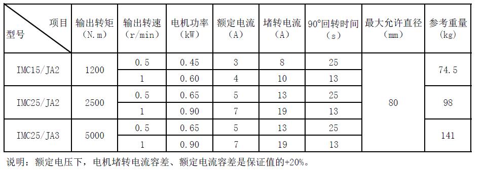 IMC/JA系列技術參數(shù)表